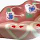 These Lip tiles are entirely glazed on the exterior. The construction is made from cut slabs and once formed, is allowed to thoroughly dry before I begin the process of decoration. The "peaks" of the top lip on the reverse side are used to hold the tile to the wall with two small nails (one on each peak). The tile may lay flat on a table to be used as a tray, small dish, etc. Just 1" in height, 5 1/2" in length, and 2 3/4" in width, this little piece can surely find a spot to beautify your home! Collect one or several!